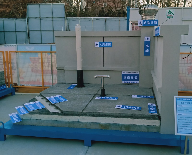 材質及做法:包含屋面女兒墻壓頂、滴水、泛水、分隔縫、避雷帶接地、通風排煙、排氣管、透氣管、屋面結構層各工序做法等工藝。